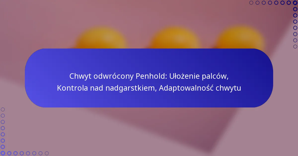 Read MoreOdwrócony chwyt penhold to charakterystyczna technika trzymania rakiety w tenisie stołowym, charakteryzująca się chwytem przypominającym trzymanie długopisu, z tyłem dłoni